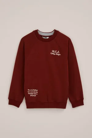 WE Fashion – Jongens sweater met embroideries – Relaxed Fit – Donkerrood – Katoen –