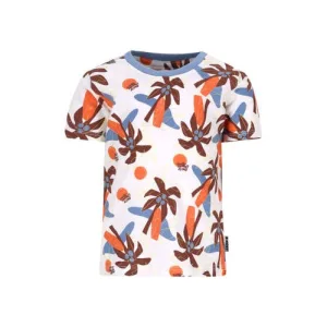 Babystyling baby regular fit broek met all over print wit/lichtblauw/okergeel