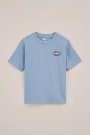 WE Fashion – Jongens T-shirt met print – Oversized – Lichtblauw – Katoen –