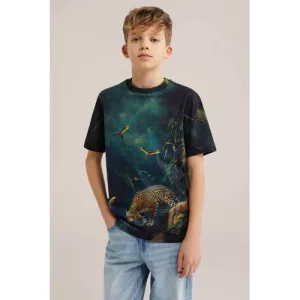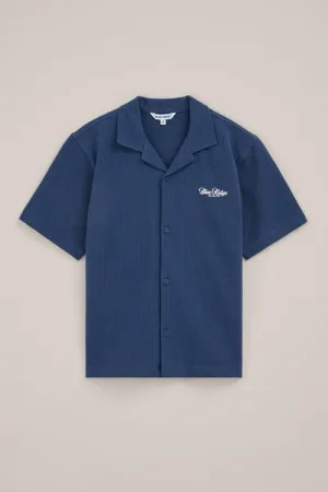 WE Fashion – Jongens seersucker overhemd met print – Regular fit – Donkerblauw – Katoen –