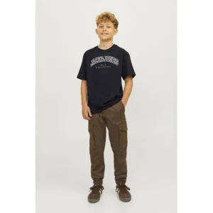 JACK & JONES JUNIOR T-shirt JJECALEB VARSITY met logo zwart