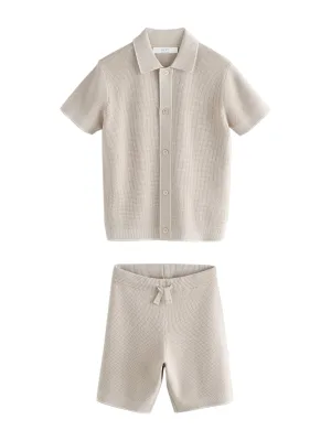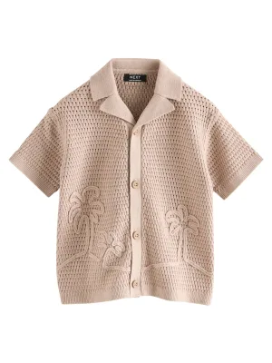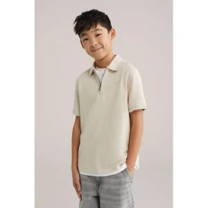 WE Fashion – Jongens polo met structuur – Regular fit – Beige – Katoen –