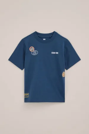 WE Fashion – Jongens T-shirt met patches – Regular fit – Donkerblauw – Katoen –