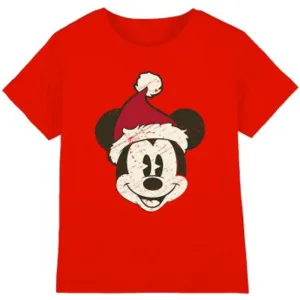 Disney Kinderen/kinderen mickey mouse kerstman gezicht t-shirt