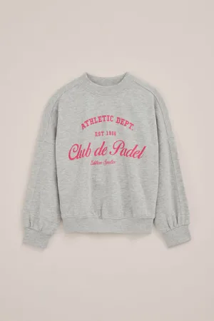 WE Fashion – Meisjes sweater met print – Oversized – Lichtgrijs gemeleerd – Katoen –