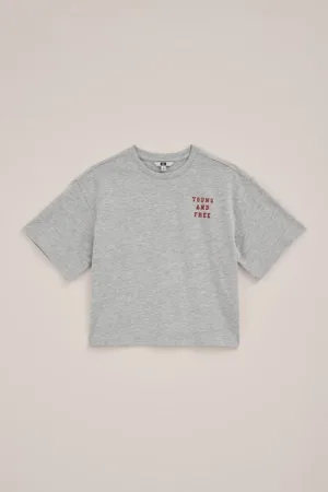 WE Fashion – Meisjes oversized sweater met print – Oversized – Lichtgrijs gemeleerd – Katoen –