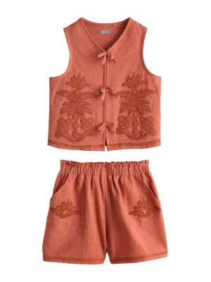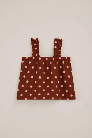 WE Fashion – Meisjes singlet met structuur en print – Regular fit – Roestbruin –