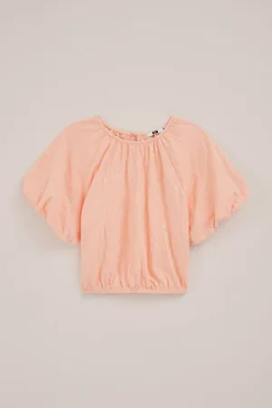 WE Fashion – Meisjes top met structuur en ballonmouwen – Regular fit – Zalmroze – Katoen –