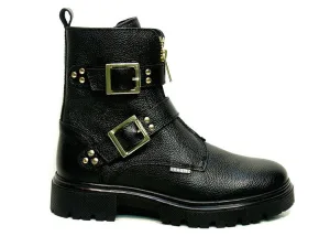 Braqeez Lola Leap gevoerde leren bikerboots zwart