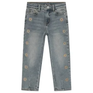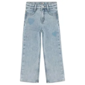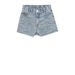 Daily7 denim straight regular waist short met hartjes light blue denim