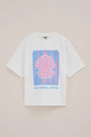 WE Fashion – Meisjes oversized T-shirt met print – Oversized – Gebroken wit – Katoen –