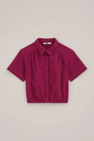 WE Fashion – Meisjes blouse met structuur – Regular fit – Donkerrood – Katoen –