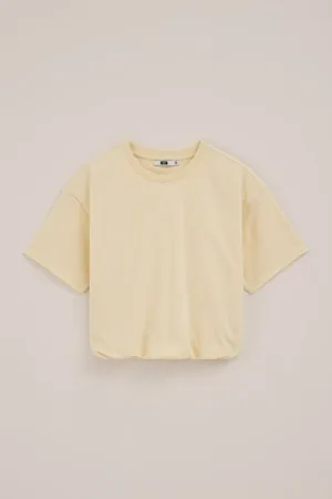 WE Fashion – Meisjes oversized T-shirt – Regular fit – Lichtgeel – Katoen –