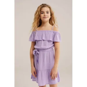 WE Fashion – Meisjes top met structuur en ballonmouwen – Regular fit – Lila – Katoen –