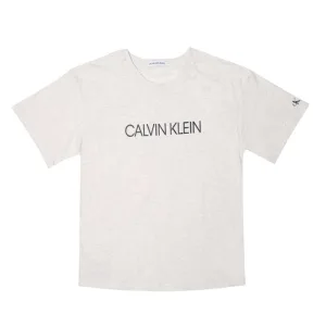 Girl’s Calvin Klein Junior Boxy Organic Cotton Logo T-Shirt in White marl