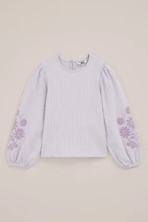 WE Fashion – Meisjes seersucker blouse met embroideries – Regular fit – Lila – Katoen –