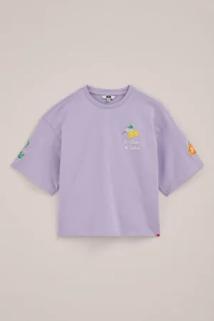 WE Fashion – Meisjes top met print – Regular fit – Paars –