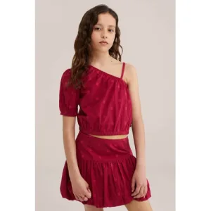 WE Fashion one shoulder top met stippen rood