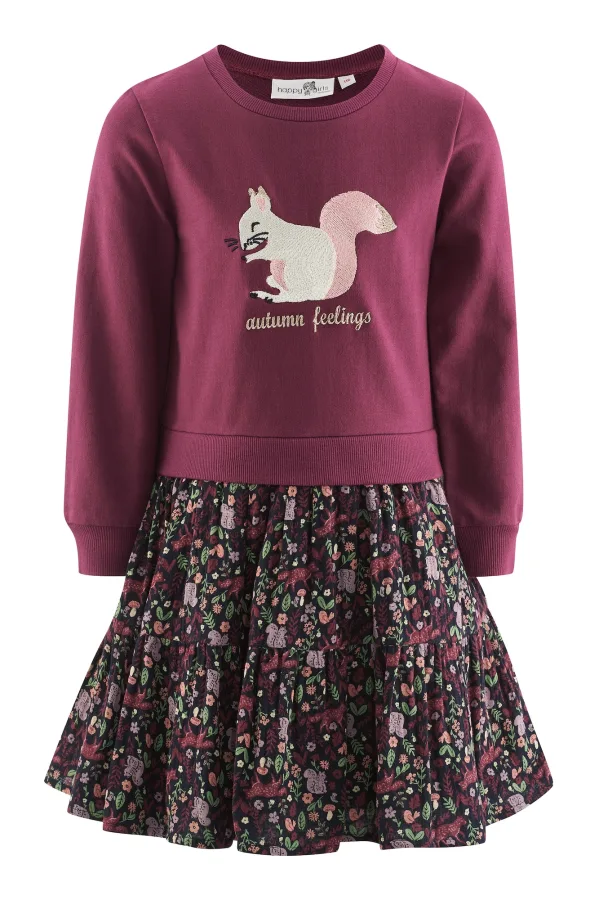 happy girls Jurk ‘Eichhörnchen’ navy / lichtgroen / pastelroze / donkerrood