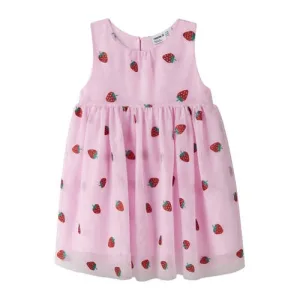 NAME IT MINI mouwloze tule jurk met aardbeien roze