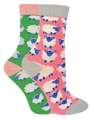 Set van 2 sokken met dierenprint voor meisjes | Miss Sparrow | Casual grappig patroon crew bamboe sokken | Grappige nieuwe sokken voor kinderen – Schaap