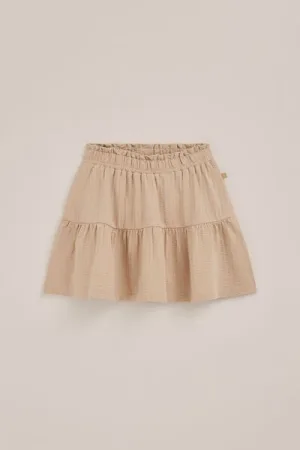 WE Fashion – Meisjes seersucker skort – Regular fit – Beige – Katoen –