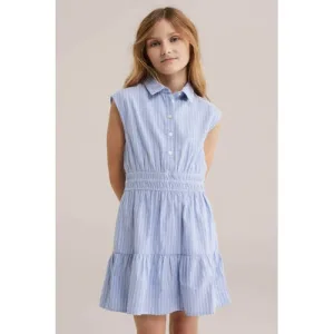 WE Fashion gestreepte blousejurk lichtblauw