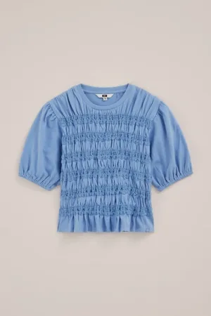 WE Fashion – Meisjes top met structuur en ballonmouwen – Regular fit – Zalmroze – Katoen –