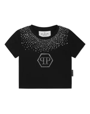Cropped T-Shirt Strass Round Neck Ss Hexagon