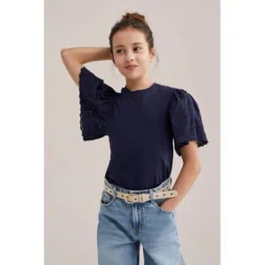 WE Fashion – Meisjes T-shirt met embroideries – Oversized – Lichtblauw – Katoen –