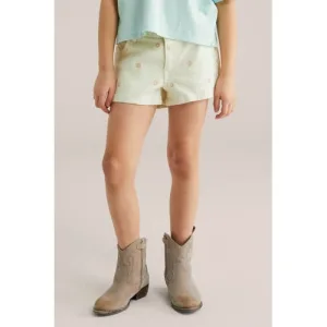 WE Fashion straight gebloemde denim short ecru