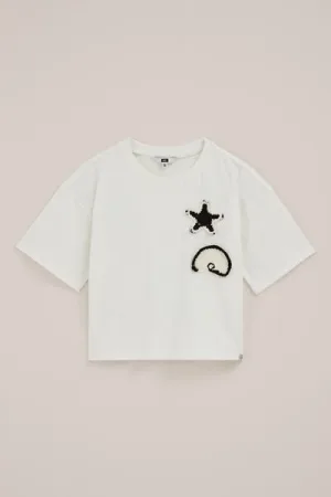 WE Fashion – Meisjes oversized T-shirt met embroidery – Oversized – Gebroken wit – Katoen –