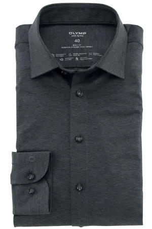 OLYMP Level Five 24/Seven Body Fit Jersey shirt antraciet, Effen