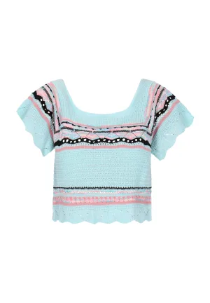 IZIA Trui ‘Boho’ aqua / rosa / zwart