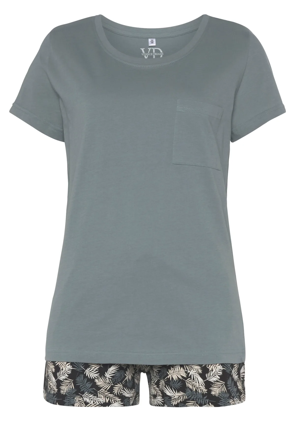 VIVANCE Korte pyjama ‘Dreams’ beige / groen / zwart