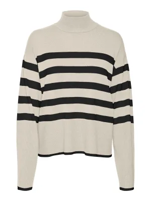 VERO MODA Trui ‘Happiness’ beige / nachtblauw