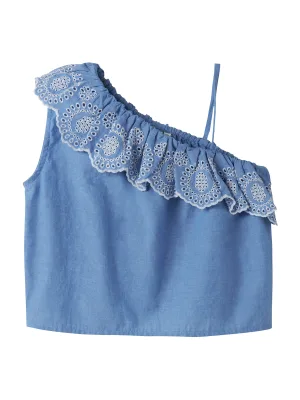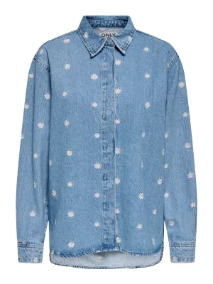 ONLY Blouse ‘ONLVERA’ blauw denim / wit