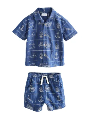 Next Shirt blauw gemêleerd / wit