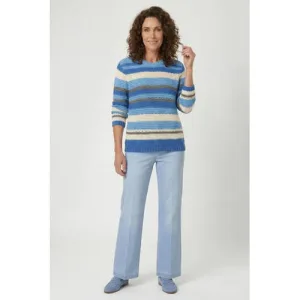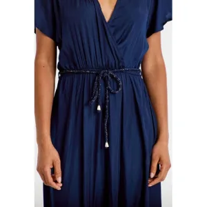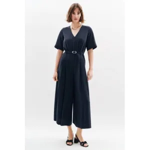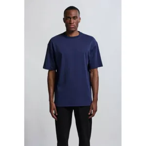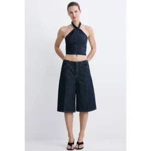 MS Mode bouclé wide leg regular waist broek donkerblauw