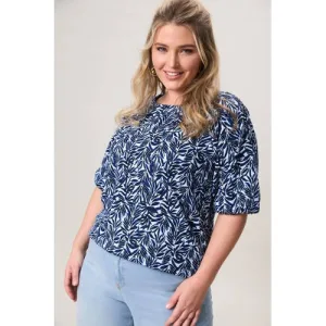 Miss Etam Plus denim wide leg regular waist broek donkerblauw