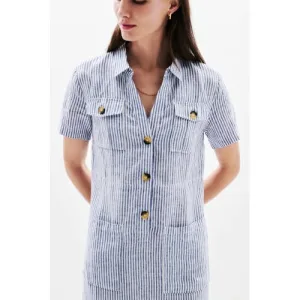 Caroll linnen gestreepte blousejurk medium blue denim