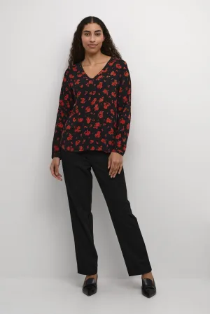 Blouse met lange mouwen Regular fit Black_Red Flower Print