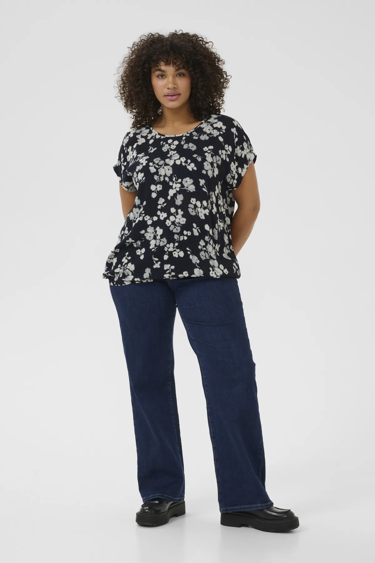 Blouse met korte mouwen Relaxed fit Midnight / Blue Flowers floral