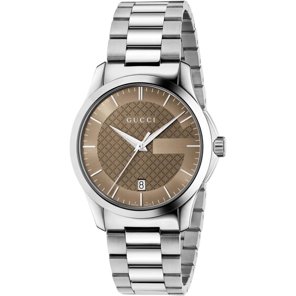 Gucci G-Timeless YA126445 Unisex Horloge met Bruine Wijzerplaat en Zilveren Band