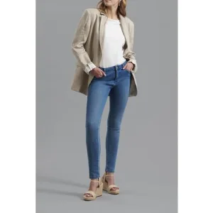 ICode Ecru Denim Dress With Ochre Topstitching Ecru