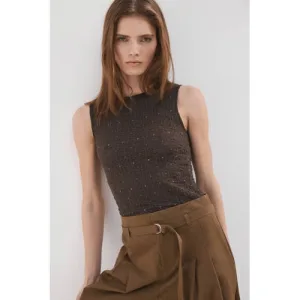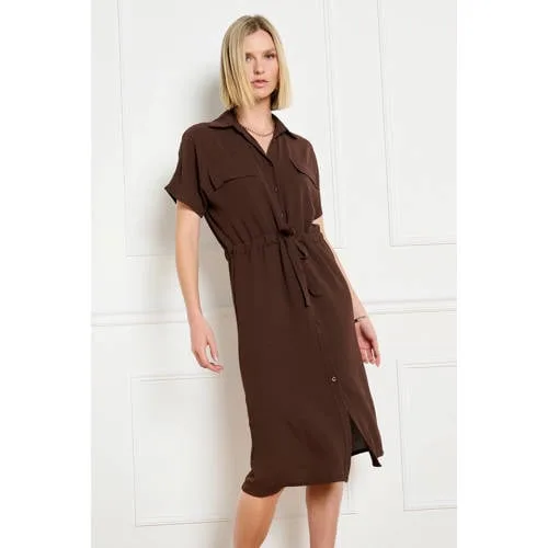 YOEK maxi jurk DOLCE met all over print bruin/ wit