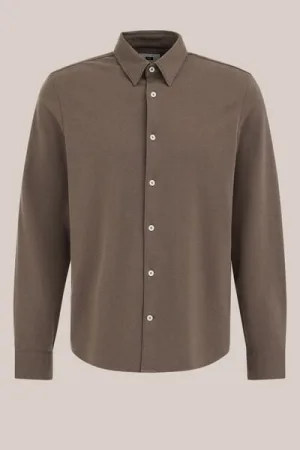 WE Fashion – Heren regular fit gebreid overhemd met structuur – Regular fit – Taupe – Katoen –