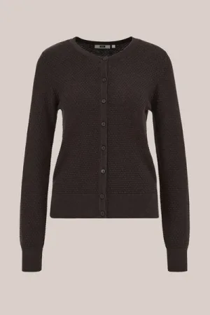 WE Fashion – Dames gebreid vest met structuur – Regular fit – Donkerbruin – Biologisch katoen –