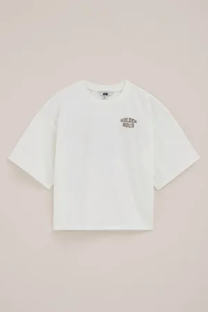 WE Fashion – Meisjes oversized T-shirt met print – Oversized – Lichtbruin – Katoen –