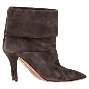 Aquazzura Vouw Enkellaarsjes met Hak in Bruin Suède